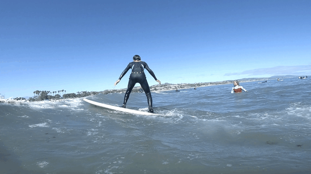 カリフォルニアの海でサーフィンレッスン。初心者レベルのレッスンなので初めての方も安心です!