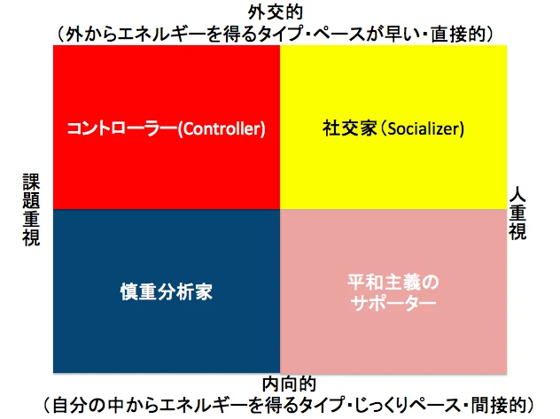 これは、パーソナリティや性格診断とは違い、要約すると、コミュニケーションスタイル診断と言えます。これを理解すると、チームにどんなタイプが必要なのか、どんなタイプを採用するべきなのか、ある従業員の適材適所配置などを考え、コンセンサスをとるのに、必要な知識と考えられています。