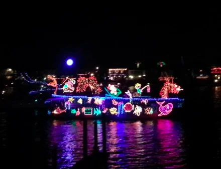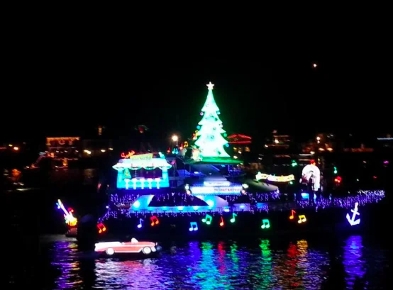 毎年クリスマスシーズンに、ニューポートビーチ在住の方や企業が、自分の所有しているボートにクリスマスのライティングをして、湾をパレードします。