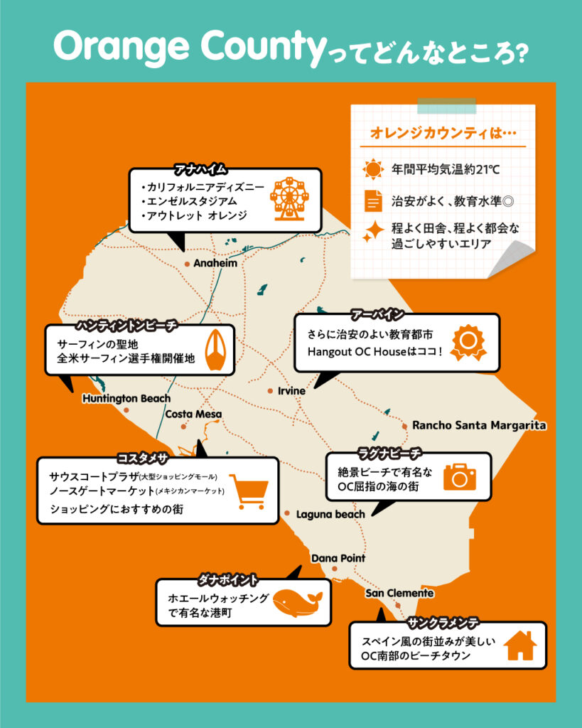 アメリカ西海岸、カリフォルニア州の南の方にあるのがオレンジカウンティ(Orange County)!